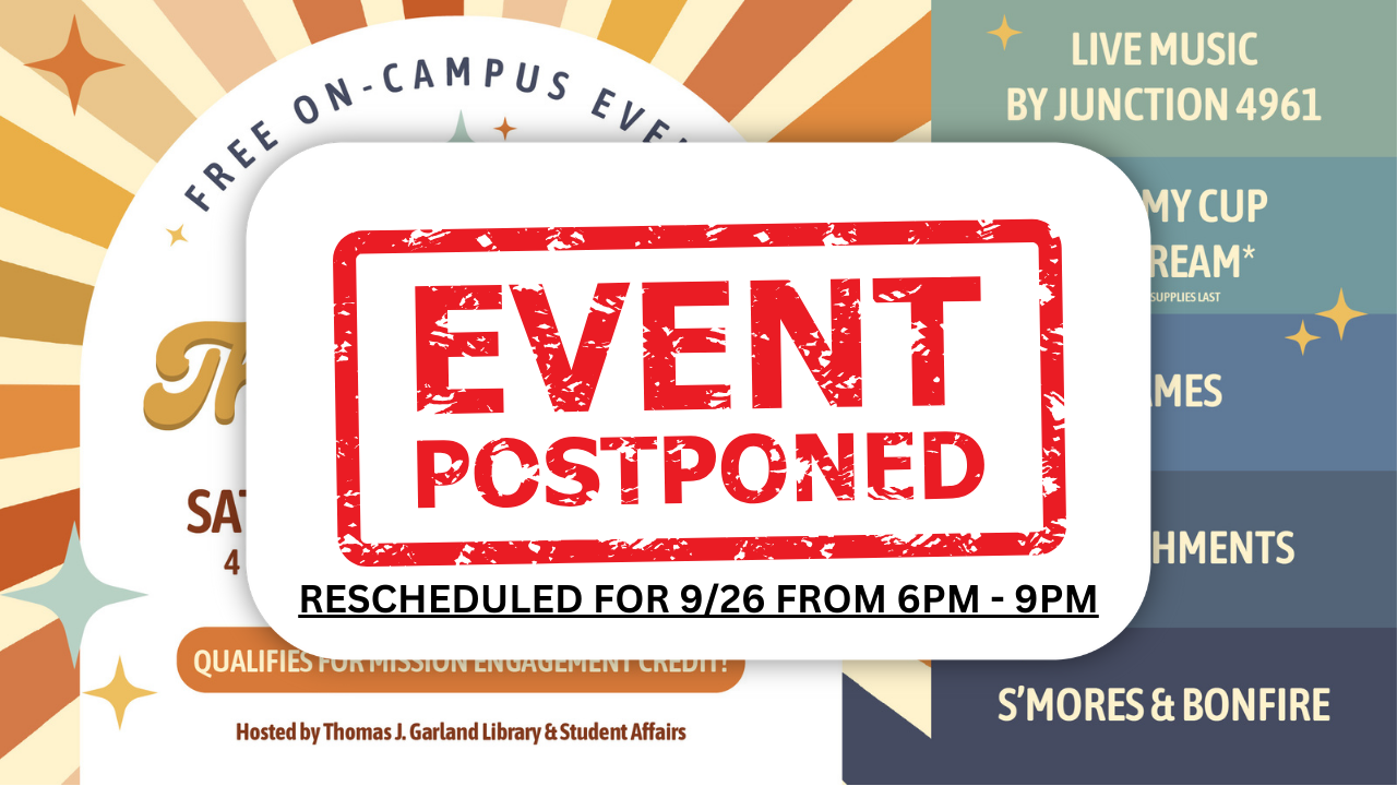 Colorful Image displayed with "EVENT POSTPONED" for Rock the Library Event